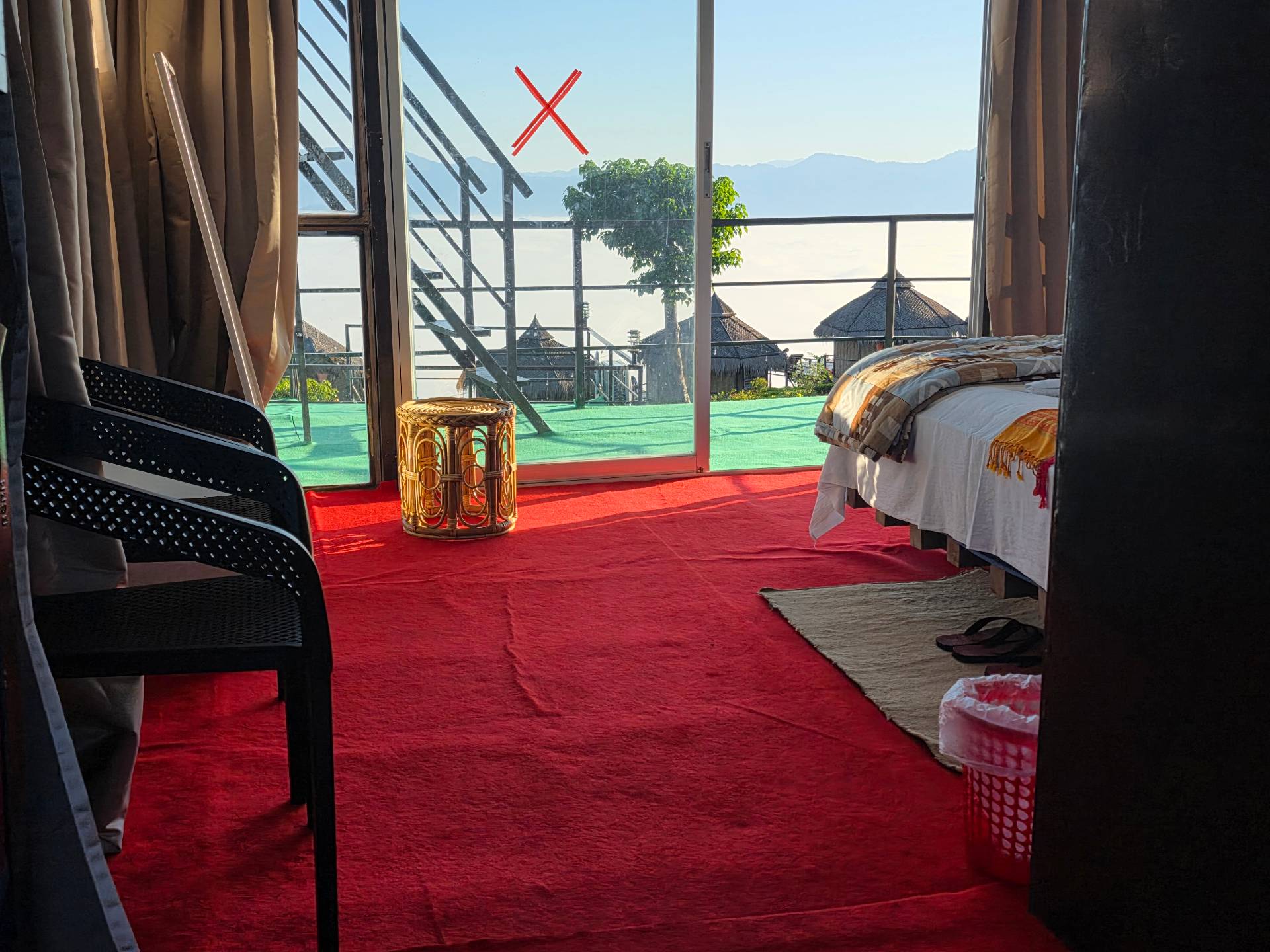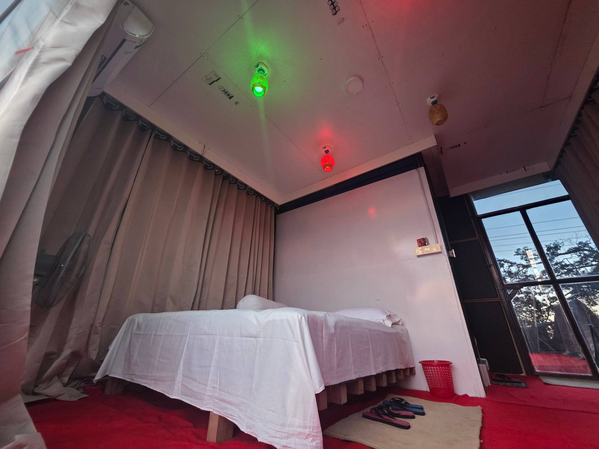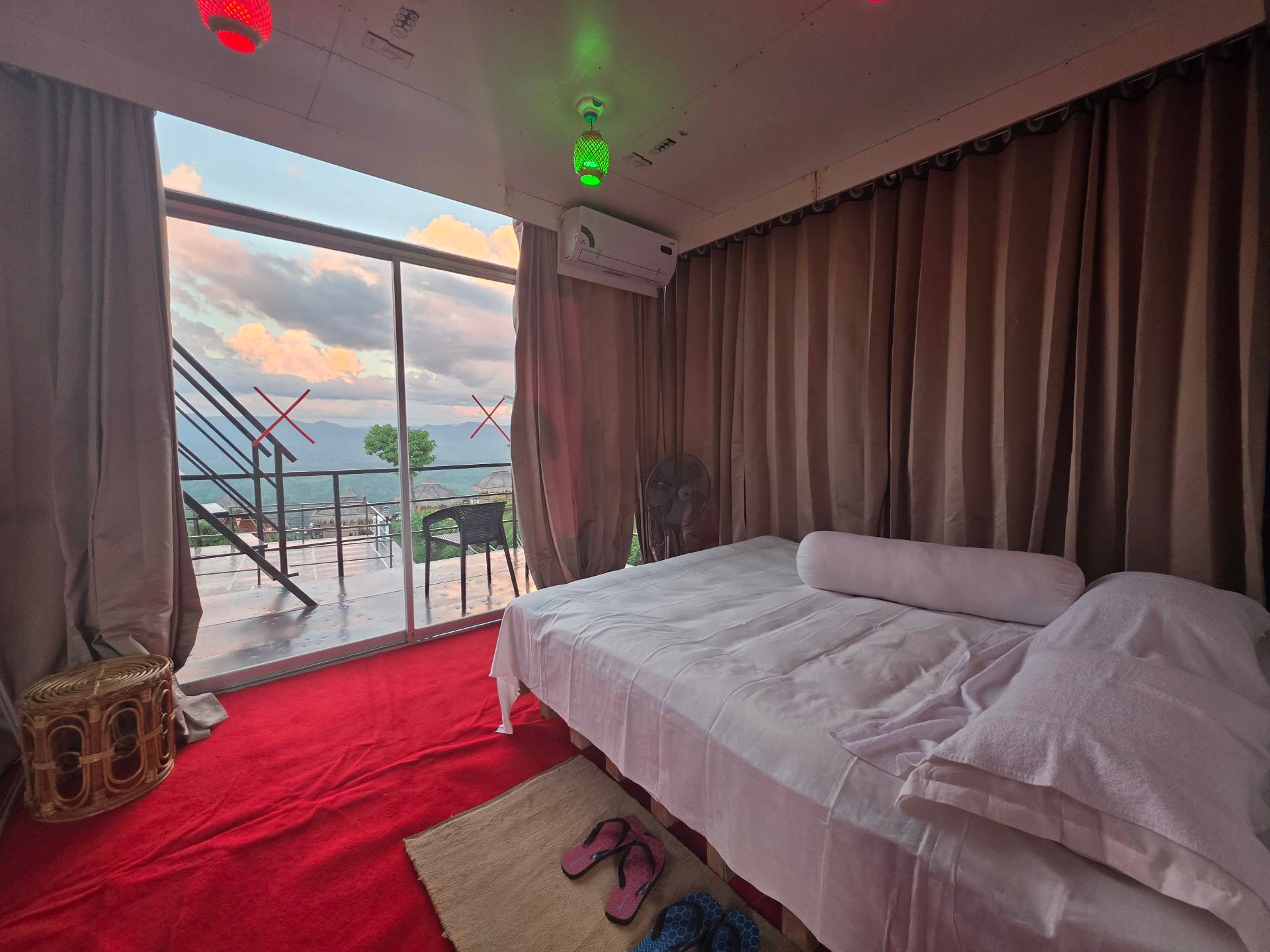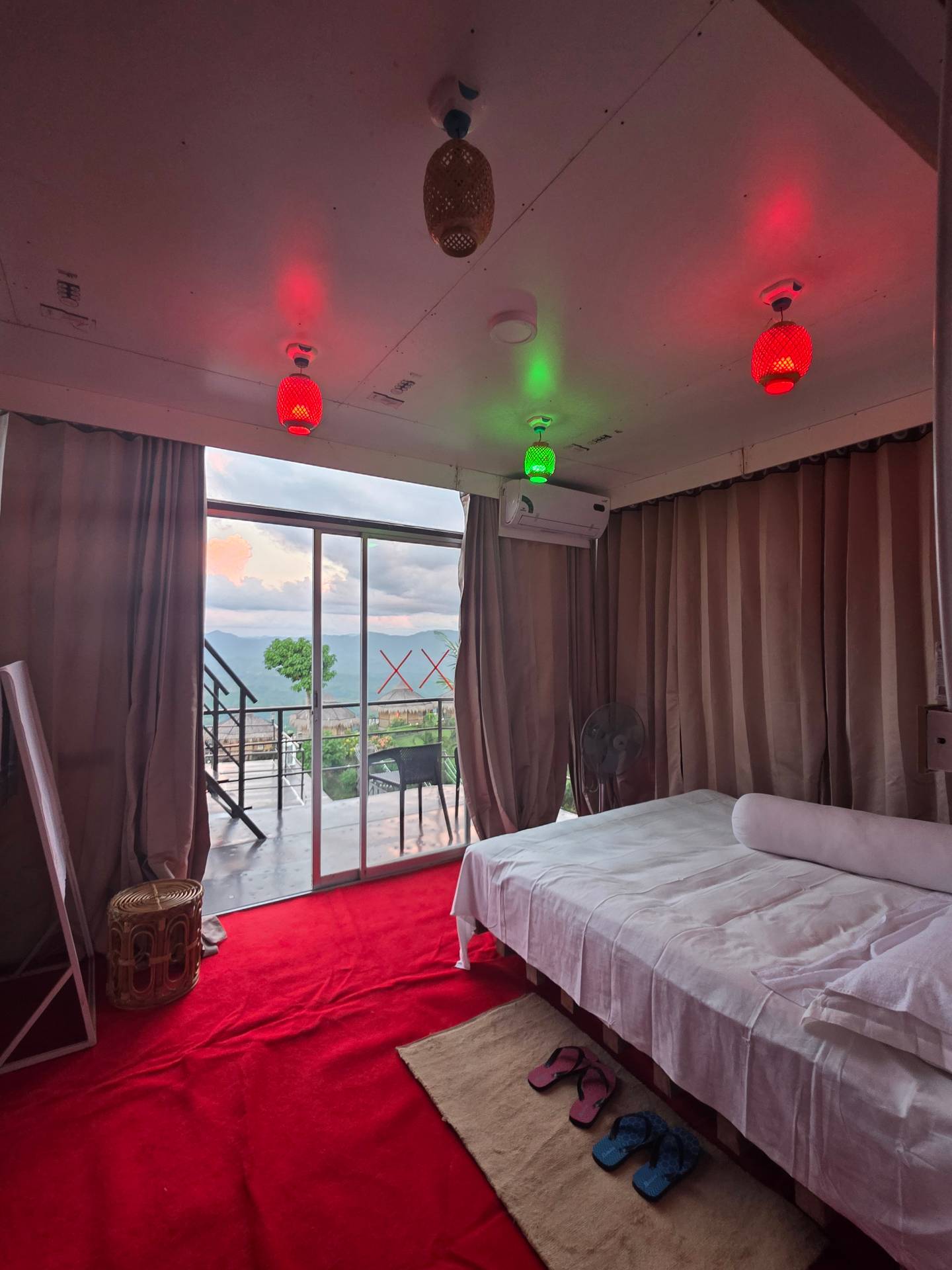 SUNFLOWER cottage comprises 1 couple Bed, AC, 1 Bedside Table, 1 stand fan, 1 shaped balcony. The room is furnished with an t-table and 1 large mirror. Our modern-fittings spacious bathroom is equipped with standard toiletries as well as all the amenities. A Complimentary Bottle of water, and access to the largest garden area are provided during your stay. You will get a full infinity hill view of Mizoram from inside and outside the cottage.