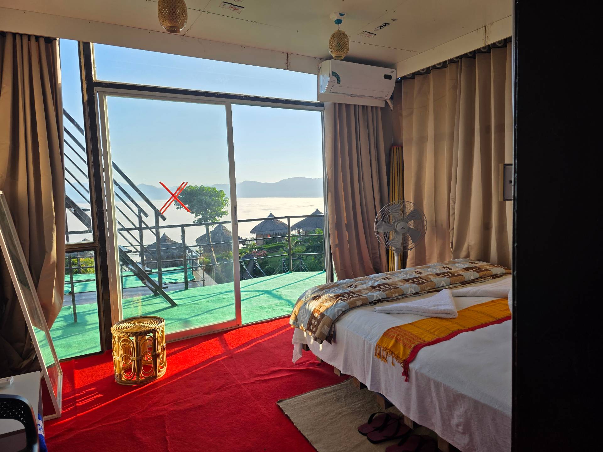 WALTER LILY cottage comprises 1 couple Bed, AC, 1 Bedside Table, 1 stand fan, 1 shaped balcony. The room is furnished with an t-table and 1 large mirror. Our modern-fittings spacious bathroom is equipped with standard toiletries as well as all the amenities. A Complimentary Bottle of water, and access to the largest garden area are provided during your stay. You will get a full infinity hill view of Mizoram from inside and outside the cottage.